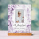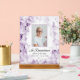 Erinnern Sie sich an das Leben Ihrer Lieben nach ihrem Tod mit dem eleganten Lila Hydrangea-Blume Watercolor Celebration of Life Funeral Acrylic Sign. Diese hübsche Gedenkstätte mit Blütenblättern aus der Hydrangea-Blume mit weißem Hintergrund und den Worten In Erinnerung zeigt eine digital bemalte Aquarellfoto. Fühlen Sie sich frei, den Text zu ändern und personalisieren Sie ihn mit einem Foto, Namen und Daten.