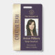 Dieses berufliche Luxus-Gold und das lila Mitarbeiter-Foto-ID-Abzeichen können Sie ganz einfach mit Ihren individuellen Daten personalisieren.