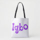 Diese lila Tasche ist mit "Igbo" in lustigem lila Schriftart auf weißem Hintergrund gestaltet. Fügen Sie Ihren Text, Namen, Bild, etc. hinzu. Bestelle noch heute!