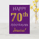 Dieses einfache, personalisierte Hochzeitsjubiläum Grußkartendesign enthält die Meldung "GLÜCKLICH 70. JAHRHUNDERT", mit der "70." ein Imitat vergoldeten Auftritt. Die Vorderseite ist mit einem personalisierten Namen und einem lila Hintergrund versehen. Im Inneren befindet sich eine personalisierte Begrüßungsbotschaft zum Hochzeitstag. Es könnte einem Ehemann oder einer Ehefrau zur Feier des siebzigsten Hochzeitstages des Paares gegeben werden. [~Z0000089]