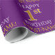 Lila, Imitate Gold "HAPPY 1th BIRTHDAY" Geschenkpapier