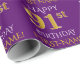 Lila, Imitate Gold "HAPPY 91. BIRTHDAY" Geschenkpapier