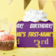 Dieses Packpapier-Design enthält eine Nachricht wie "Dritter Geburtstag des ersten Namens!", mit dem "3." mit einem goldfarbigen Imitat/Imitation und mit dem Namen und dem "BIRTHDAY" in einem lustigen, kühnen Schriftart. Der Name kann personalisiert sein, der Hintergrund ist lila. Papier wie dieses könnte vielleicht benutzt werden, um Geburtstagsgeschenke zu verpacken, die jemandem anlässlich seines dritten Geburtstages gegeben werden. [~Z0000206]