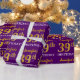 Dieses Verpackungspapier-Design enthält eine Nachricht wie "Jennifers 39. BIRTHDAY!", mit dem "39.", der ein goldfarbenes Imitat/eine Imitation hat. Der Name kann personalisiert sein, der Hintergrund ist lila. Es könnte vielleicht verwendet werden, wenn Geschenke für jemanden zum neununddreißigsten Geburtstag verpackt werden. [~Z0000182]