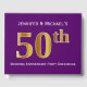 Dieses Gästebuchdesign weist die Ordnungsnummer "50." mit einem goldähnlichen Imitat auf. Es bietet auch individuelle Name und einen lila Hintergrund. Es könnte in einem Party für ein verheiratetes Ehepaar zum fünfzigsten Hochzeitstag verwendet werden.