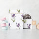 Lila Irisblütendesign auf weißem Hintergrund. Die Hintergrundfarbe kann geändert werden.