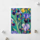 Lebhafte lila Töne mit zarten Blütenblättern werden vor einem hellgelben Hintergrund dargestellt, was einen auffälligen Kontrast schafft. Die üppig grünen Stiele und Blätter tragen zur lebhaften Komposition bei und verbessern die allgemeine Lebendigkeit.