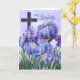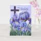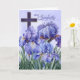 Lila und helle Lavendelfarben schaffen eine wunderschöne Beileid-Karte. Man glaubt, dass die lila Iris Liebende auf ihrem Weg in den Himmel führen wird. Diese Botschaft und ein Kreuz schaffen einen wunderbaren Weg, Ihr Beileid mit einem spirituellen Thema und einem religiösen Gefühl zu senden.
