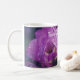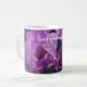 Lila Irisationen symbolisieren Respekt, Wissen, Dankbarkeit, Frieden und Harmonie. Tasse mit Blumenmotiven......................................................................................................................................................................................................................................................... Sie können den Text "Frischer Morgen zu Ihnen" durch Ihre eigene Nachricht ersetzen.