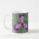 Diese Kaffee-Tasse zeigt ein Foto eines lila Iris. Das Foto wurde mit Makrofotografie für ein detailliertes Ergebnis erstellt. Diese schöne Blume blüht jedes Jahr in meinem Gartenteich und lässt mich immer lächeln. Die Blume erscheint auf beiden Seiten der Tasse. Das Design wird auf einer weißen Tasse gezeigt, ist aber auch auf anderen Stilen und Farben von Tasse erhältlich.