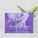 Die Vorderseite dieser Einladung hat eine nahe lila Iris. Auf der Rückseite des Einladens befinden sich einige delikate Iris-Blume auf rosa und gelbem Hintergrund. Personalisieren Sie Ihre eigenen Hochzeitsdetails.