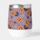 Dieses Design zeichnet sich durch ein lebendiges Halloween-Muster mit einem spielerischen und niedlichen Design aus. Das Muster zeigt hellorange Jack-o'-Laternen mit verschiedenen fröhlichen und freundlichen Ausdrücken. Diese Kürbis sind von einem lila Hintergrund umgeben, der mit weißen Spinnweben, schwarzen Fledermäusen, halbmondförmigen Monden, Sternen, Süßmais und kleinen Spinnen gefüllt ist. Das Gesamtthema ist lustig und festlich, es eignet sich perfekt für ein leichtes Halloween-Dekor oder ein Themendesign. Die Farbpalette besteht aus einer Mischung aus orangefarbenen, schwarzen und lila Halloween-Farbtönen, die durch eine Touch von Weiß und Gelb kontrastiert.