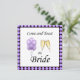 Kommen Sie und probieren Sie die Braut mit lila Ballons und Champagner-Gläsern. Balloons und alle Informationen für Ihre Veranstaltung auf der Rückseite dieser hübschen lila Einladung.