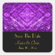 Save the Date Aufkleber - personalisieren Sie Ihre persönlichen Daten. Schönes, lila Kaleidoskop-Design mit rautenförmigen Einlegearbeiten in dunklem Violett. Licht und Schatten schaffen einen interessanten Look für dieses glänzende, farbige, surreale symmetrische Muster.