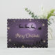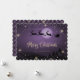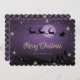 Eine wunderschöne, schneebedeckte Weihnachtskarte des Weihnachtsmannes mit Winterszene mit Weihnachtsmann und Rentier, Schneeflocken, Sternen und fallendem Schnee auf der Vorderseite und ein lila Büffel karierter Hintergrund mit Schneeflocken und Sternen auf der Rückseite. Personalisieren Sie diese lila karierte Weihnachtskarte einfach mit Ihrem Familiennamen und Text.