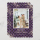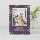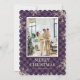 Lila Büffel kariertes Foto Frohe Weihnachtskarte mit fallendem Schnee und funkelnd Schneeflocken. Personalisieren Sie diese lila Weihnachtskarte mit Ihrem Foto, Text und einem Familiennamen. Erstellen Sie in dieser Ferienzeit eine einzigartige Foto-Urlaubskarte für Ihre Familie und Freunde.