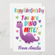 Eine besondere Glückwunschkarte zum Valentinstag! Diese fröhliche Grußkarte enthält einen lila Dinosaurier, einige hübsche Herzen und das farbenfrohe Sprichwort 'You are dino-mite'. Ein niedliches Design für Kinder für ein Schulzimmer Valentine. Fügen Sie den Namen des Kindes zur Vorderseite der Karte hinzu, um ihn anzupassen. Ändern Sie dann die Nachricht auf der Rückseite, um sie zu personalisieren.