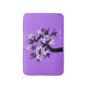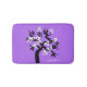 Schwarz-Weiß Liebesvögel Sakura Kirschbaum mit blühenden lila Badehandtuch Set. Es ist mit einem schwarzen Sakura-Baum und weißen Blume mit schwarzen Herzen in der Mitte und einem Paar Liebesvögel ausgestattet. Ihr Name ist in einem Schriftart im Skriptstil geschrieben.