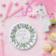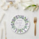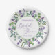 Brautparty Papierplatte. Dieses Design zeigt eine Aquarellillustrierung Lila Lavendel-Blume und Eukalyptus-Blattwerk. Personalisieren Sie mit Ihrem Namen und Datum. Text "Brautparty" wird in einem Skript-Schriftart geschrieben.
