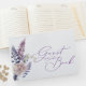 Schattierungen oder lila Lavendel-, Lila- und Blautöne schmücken die zarten Blumen dieses eleganten Gästebuches. Dieses ultramädchenhafte Design wird sicher den Kopf drehen. Ideal für ein Brautparty, eine Babydusche, eine Abschlussfeier oder jede Veranstaltung, um die Wünsche Ihrer Gäste zu erfassen.