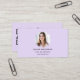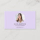 Verbinden Sie stilvoll mit dieser lila Lavendel Foto Visitenkarte mit einem skalierbaren QR-Code, der direkt auf Ihre Social Media, Website oder Buchungsseite verweist. Die beruhigende Lavendel-Farbpalette verleiht der Karte ein modernes und dennoch leicht zugängliches Aussehen, während das individuell anpassbare Profil-Foto sie persönlich und unvergesslich macht. Ideal für Einflusspersonen, Unternehmer, Kleinunternehmer und Content-Creators, die mit einem frischen und trendigen Design gewollt sind.