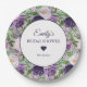 Schöne Pflaume lila und weich Lavendel Aquarell Blüten und Grün auf botanischen weißen Brautparty Papier Teller. Personalisiert mit dem Namen der Braut und ihrem Duschdatum. Alle Texte sind anpassbar, also fügen Sie sie hinzu oder entfernen sie, wie Sie möchten. Kontaktieren Sie uns für Hilfe bei der Anpassung oder der Anpassung von Produkten.