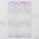 Eine elegante, glamouröse Hochzeitskarte. Personalisieren und fügen Sie Ihre Namen, Datum und das Hochzeitsmenü. Imitat silber aussehend, mit lila Lavendelkonfetti dekoriert.