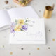 Lavender Lila & Sunshine Yellow Floral Wedding Guest Book Siehe Matching Collection in Niche und Nest Store