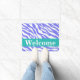 Herzlich willkommen auf Ihrer Zuhause mit dieser stilvollen und raffinierten Perwinkle lila Lavendel und weißer Zebrahaut-Türmatte. Diese Türmatte ist mit dem Wort Willkommen versehen, das Sie in ein anderes Wort oder einen anderen Namen ändern können. Ein türkisfarbener aquamarin blauer Streifen bietet einen Raum für die Personalisierung und einen zusätzlichen Pop der Farbe. Genießen Sie dieses beliebte und zeitgenössische Design, das einen trendigen Zuhause-Dekorationsakzent hinzufügen wird. Dieses Design ist in verschiedenen Farbkombinationen in diesem Laden erhältlich.