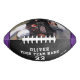 Lila Leder Print Player Name Team Foto Football. Der Text ist eine trendige, weiße Typografie auf schwarzem Lederuntergrund mit lila Streifen. Personalisieren Sie es mit Ihrem Foto, Spielername, Nummer, Teamname und Jahr. Sie können jeden Text auf dem Fußball ändern oder löschen. Ein perfektes Geschenk für Fußballspieler, Teamkollegen oder Trainer. Tolle Erinnerung an Ihren Lieblingssport.