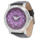 Lila Leidenschaft - Schwarzes Leder der Männer Armbanduhr