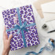 Dieses atemberaubende Design besticht durch einen kräftigen Leopardendruck in einem lebendigen, lila und glänzenden Gold vor einem weißen Hintergrund. Ideal, um jedem Anlass etwas Persönlichkeit hinzuzufügen.