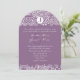 Lila Liebesgeburten Damask Monogram Hochzeiten Einladung