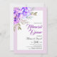 Lila Aquarell Blume lila florale Hochzeit Probe Dinner Einladung. Ein wunderschönes Hochzeitsdesign mit Aquarellfarben-Blume in lila und Blätter. Die Phrase "Probe dinner" ist in Skripttypografie.