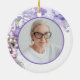 Ehre deinen verstorbenen Liebsten mit den hübschen Lila Lilac Blume Watercolor Memorial Keepake Round Keramik Ornament. Personalisieren Sie es mit dem Namen des Verstorbenen, Geburtsdaten / Todesdaten und Bild auf der Rückseite. Dieses elegante, individuelle, blumengeschmückte Tribute Ornament besticht durch ein digital Aquarell gemaltes Blumenfoto mit lila lila Blume auf dem Baum mit weißem Hintergrund. Text liest sich im liebenden Speicher.