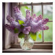 Lila Lila in alten Glasvasen auf Holzfenster im Bauernhaus