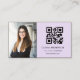 Mit dieser modernen lila lila Foto Visitenkarte werben Sie für Ihre berufliche Marke. Dieses Design mit einem weißen Hintergrund, einem eigenen Foto und einem benutzerdefinierten QR-Code, der auf Ihre Website oder soziale Medien verweist, ist sowohl stilvoll als auch funktional.