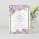 Schöne Hochzeitseinladung lila Lila blüht auf beiden Seiten. Aktualisieren Sie den Platzhaltertext einfach mit Ihren Angaben und entscheiden Sie dann einfach, ob Sie ihn drucken oder digital versenden.