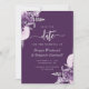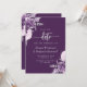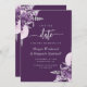 Diese elegante Hochzeitskarte Save the Date mit lila und lila Blumensträußen Set mit silbernen Imitate Folie in zwei Ecken, auf einem lila Hintergrund. Der anpassbare Text kombiniert silbergraue Serif-, kursiv- und handgeschriebene Schriftart. Die Rückseite ist mit einem lila, lila und silberfarbenen Blumendesign ausgestattet.