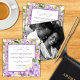 Herrliche Save the Date Hochzeitskarte, Platz und mit Ihrem Lieblings-Verlobung-Foto auf der einen Seite und Ihre Angaben auf der anderen. An den Rändern, die Ihre Namen, Daten und Standortinformationen umrahmen, blühen wunderschöne lila Lila-Blüten.