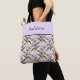 Dieser Vintage Look-Tote-Sack besticht durch delikate lila Orchideen, die in einem Vintagen, cremigen Ekru- und Weißharlequin-Muster verstreut sind. Die hübschen Orchideen verleihen dem cremefarbenen Hintergrund ein Retro- und femininines Ambiente. Das wäre ein schönes Geschenk für einen Gärtner oder jemanden, der lila Blumen Lieben.