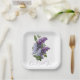 Hübsche Brautparty Papier Teller in Weiß, mit lila Lilaks und maßgeschneiderten lila Text. Personalisieren Sie den Text so, dass er Ihren Anforderungen entspricht.