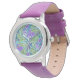 LILA LILIE ,GRÜNE BLÄTTER AQUA BLAUE BLUE FLORAL ARMBANDUHR