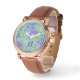 LILA LILIE ,GRÜNE BLÄTTER AQUA BLAUE BLUE FLORAL ARMBANDUHR