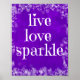 Lila Live-Liebe Sparkle Quote Plakate. Cooles lila Poster mit blauen Akzenten und den inspirierenden, motivierend Worten "Live Liebe funkelt".