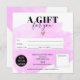Moderne abstrakte Pastellfarben lila rosa Wasserfarbe Pinselstrich einfache quadratische Geschenkgutschein, fügen Sie Ihr Logo, mit einer Rose goldenen Herz. Perfekter Geburtstag- oder Weihnachtsgutschein.