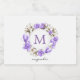Eleganter und sanfter Kranz Magnolia blühen Aquarellkunst in Weiß und lila und ein Monogramm. Ein schönes Blumendesign. Personalisieren Sie das Monogramm und den Text.