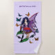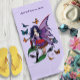 Niedliche, schwarzhaarige Feen, lila und rot, die auf einem Pilz sitzen, in einer lila Umgebung