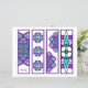 Lila und aquamarine handgezeichnete Mandala-Karten mit einem inspirierenden Zitat auf der Rückseite im Zusammenhang mit dem Lesen.