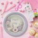 Dieses hübsche, lila Märchenschloss zeichnet sich durch blütenrosa und violette Blumen aus, die Ihren eigenen Text prägen.